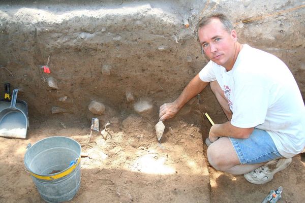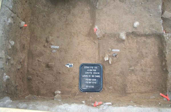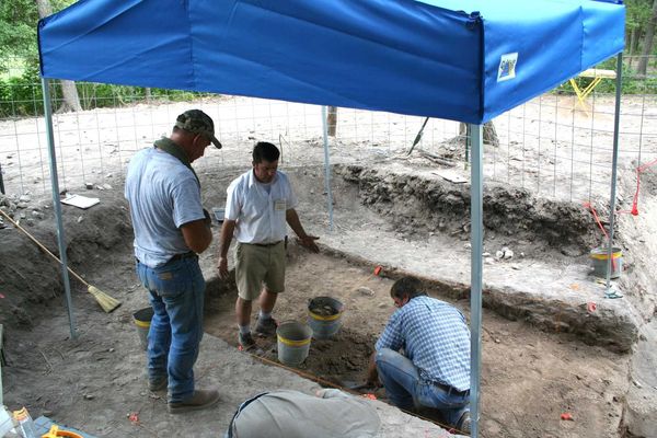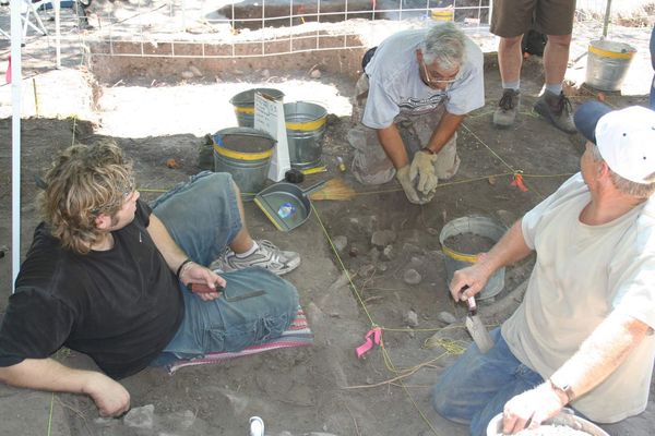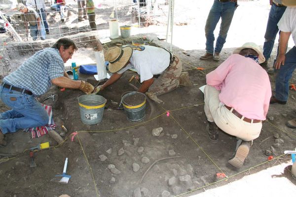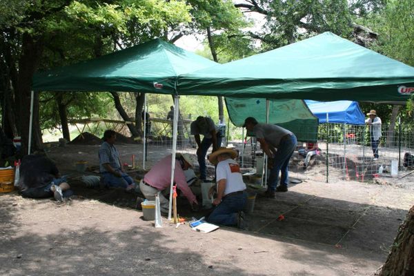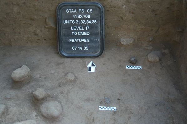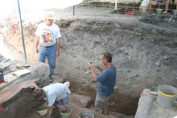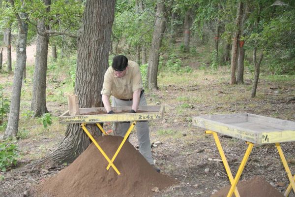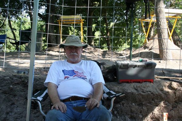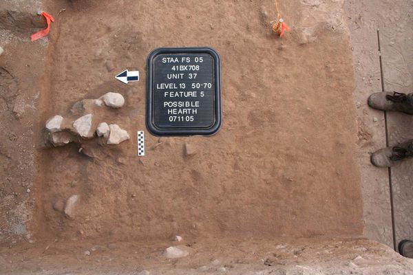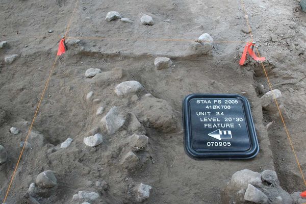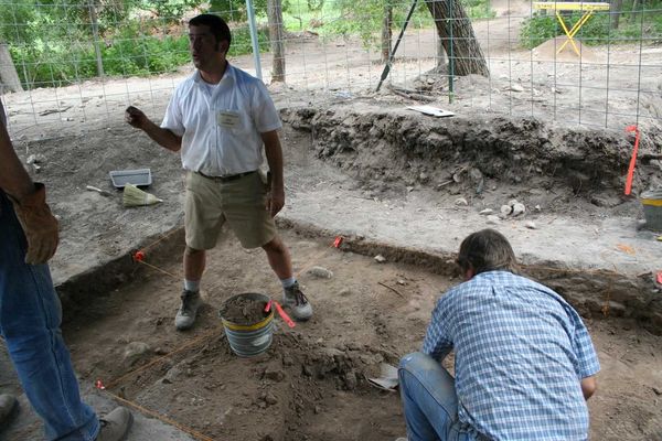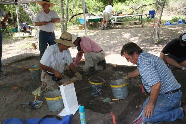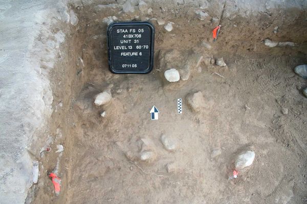 First recorded by C.K. Chandler in 1986, Abasalo Archaeological Consultants surveyed the site again and discovered Late Paleoindian, Archaic and Late Prehistoric components in April and May 2005. Initial investigation in June by STAA found a high density of cultural materials, especially in the west midden area, which was selected for further excavation in the 2005 STAA Field School.