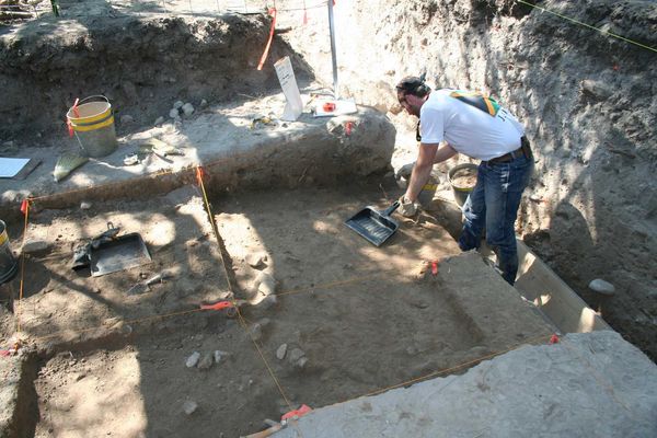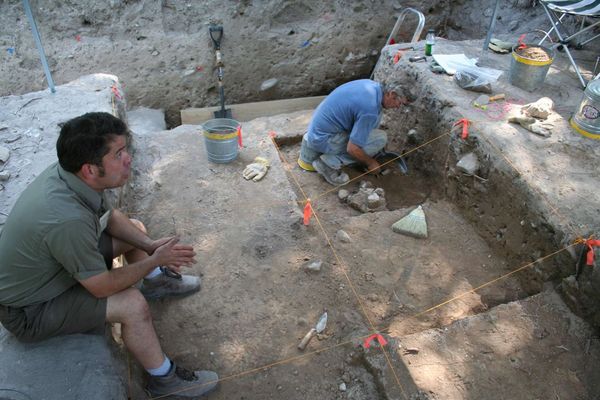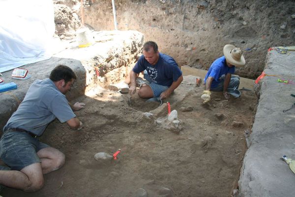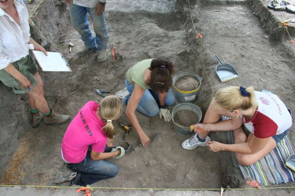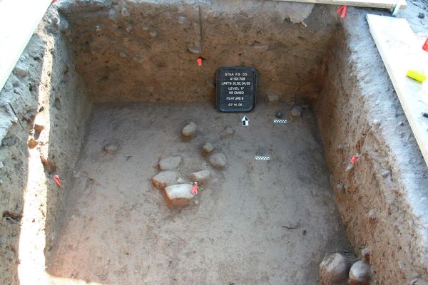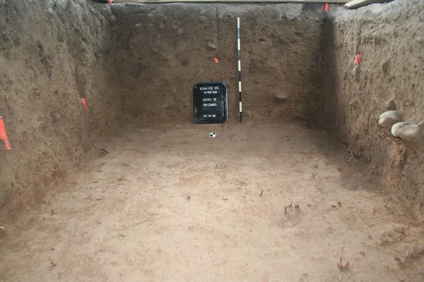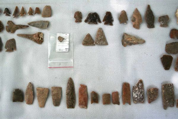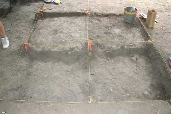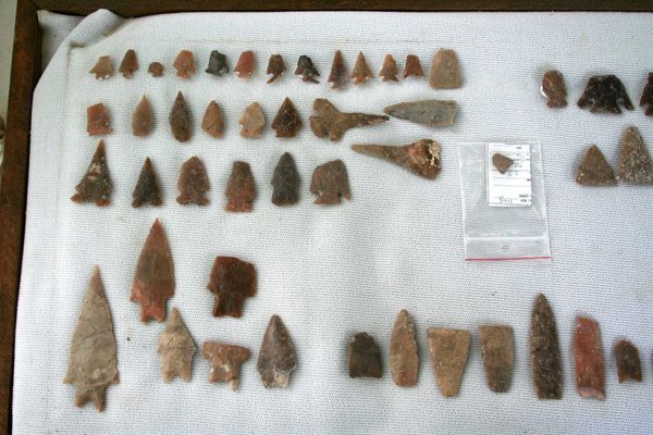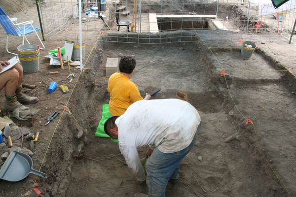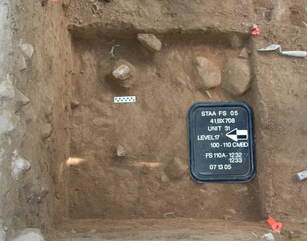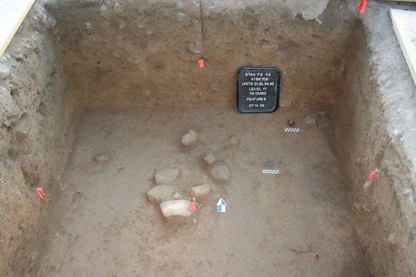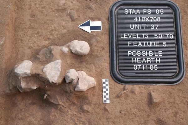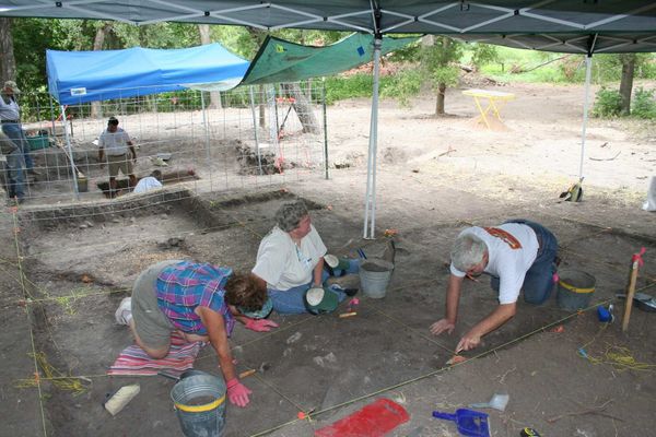 First recorded by C.K. Chandler in 1986, Abasalo Archaeological Consultants surveyed the site again and discovered Late Paleoindian, Archaic and Late Prehistoric components in April and May 2005. Initial investigation in June by STAA found a high density of cultural materials, especially in the west midden area, which was selected for further excavation in the 2005 STAA Field School.